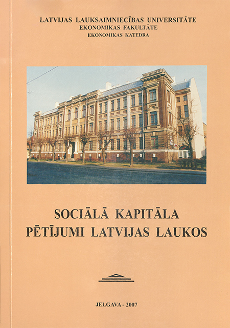 - Sociālā kapitāla attīstības iespējas Zemgalē : promocijas darbs ekonomikas doktora (Dr. oec.) zinātniskā grāda iegūšanai = Social capital development possibilities in Zemgale : Ph. D. Paper for the scientific degree of Doctor of Economics (Dr. oec.) / Modrīte Pelše ; Latvijas Lauksaimniecības universitāte. Ekonomikas fakultāte. Ekonomika katedra = Social capital development possibilities in Zemgale : Ph. D. Paper for the scientific degree of Doctor of Economics (Dr. oec.) / Modrīte Pelše ; Latvia University of Agriculture. Faculty of Economics. Department of Economics.